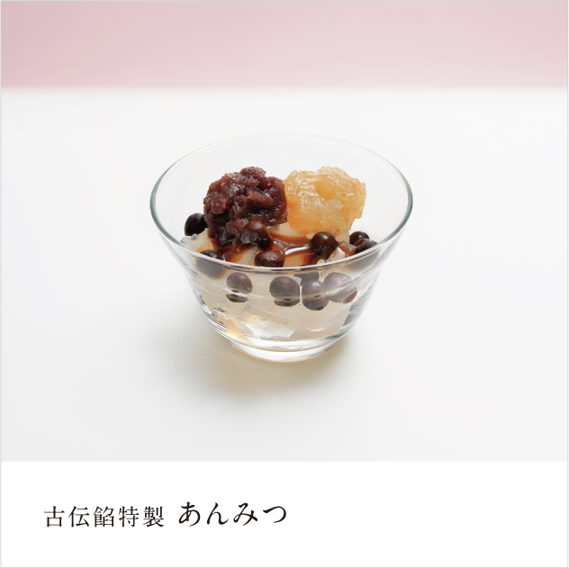 古伝餡の餡をたっぷり使ったあんみつ、焼きたての栄一バターどら焼きなど作りたてならではの美味しさをご用意しております。