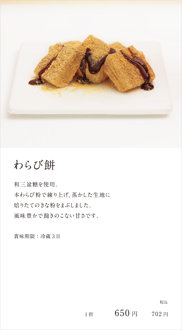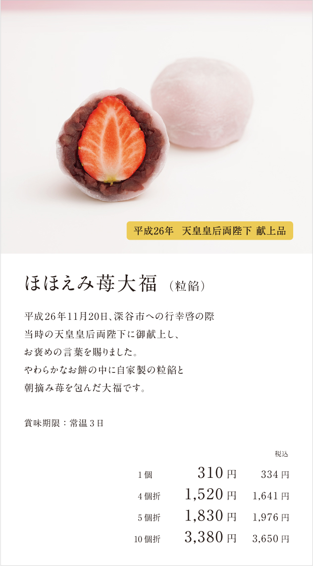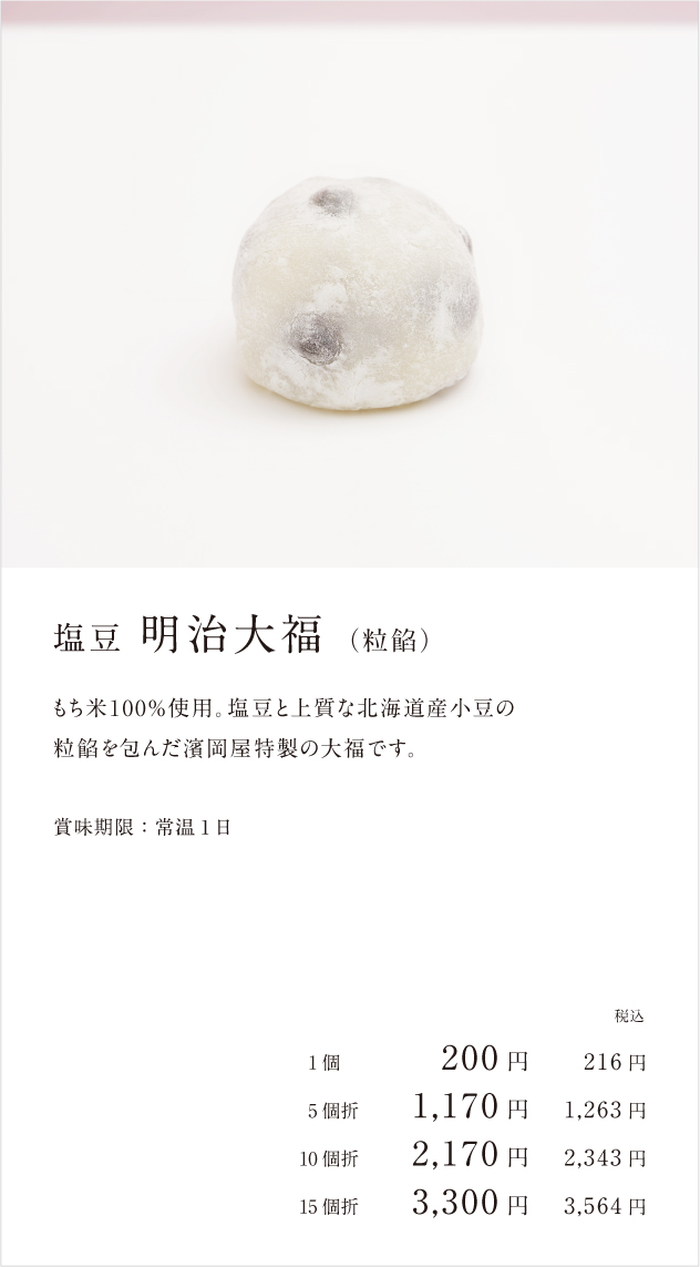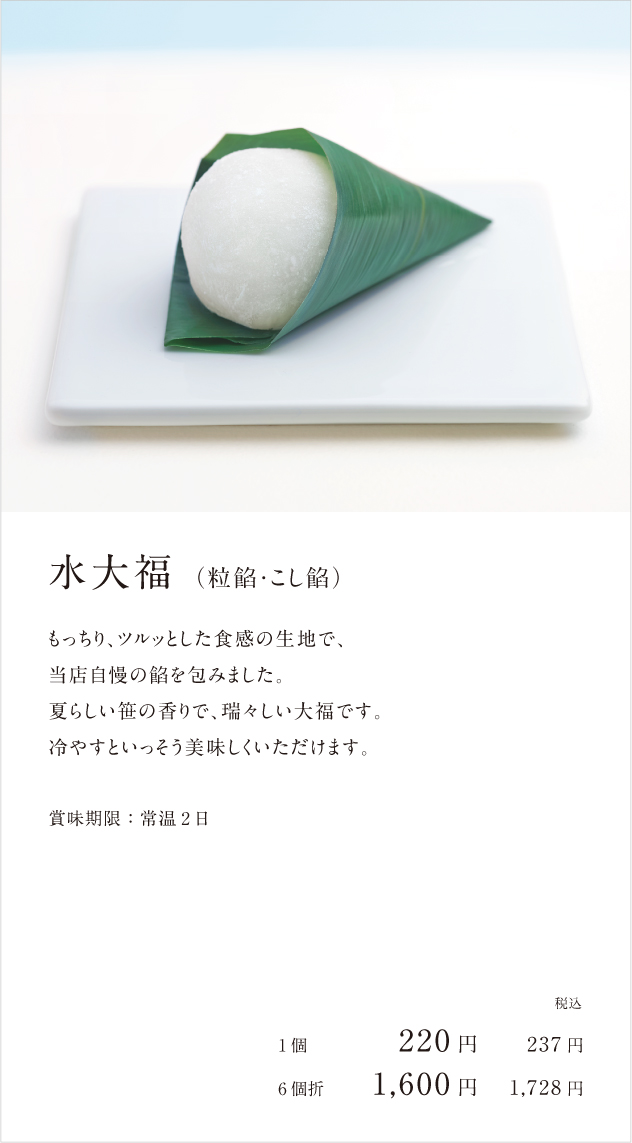 明治創業以来130年余り、原料の持つ味を大切にした手作りの和菓子にこだわって参りました。