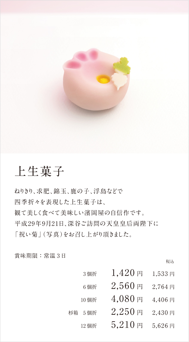 濱岡屋がこれまで受け継いできた伝統の技と、素材本来の味を存分に味わっていただけるお菓子作りを続けております。